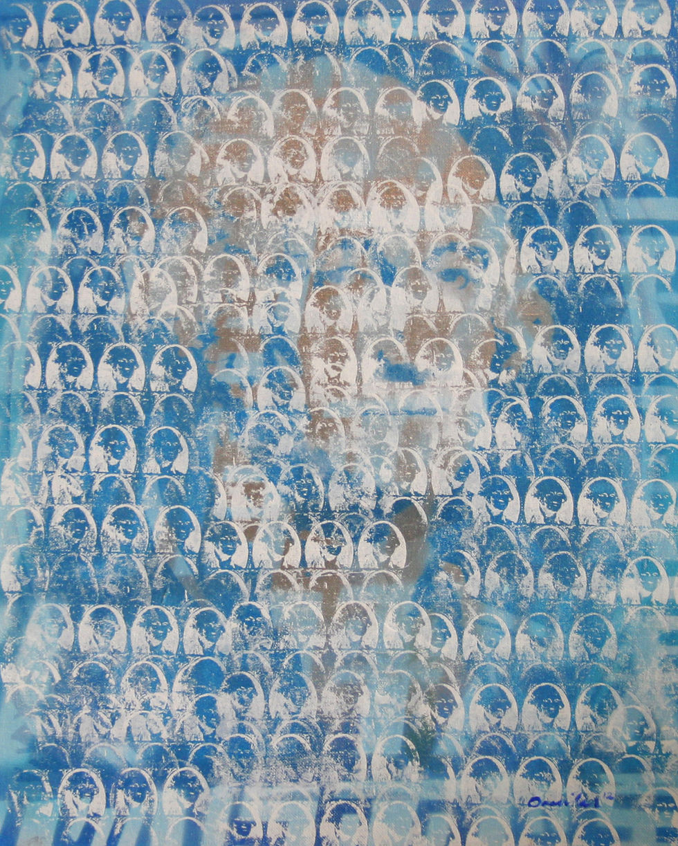 "Mona Pop" 20"x16" mixed media collage with resin by Ryan Orewiler