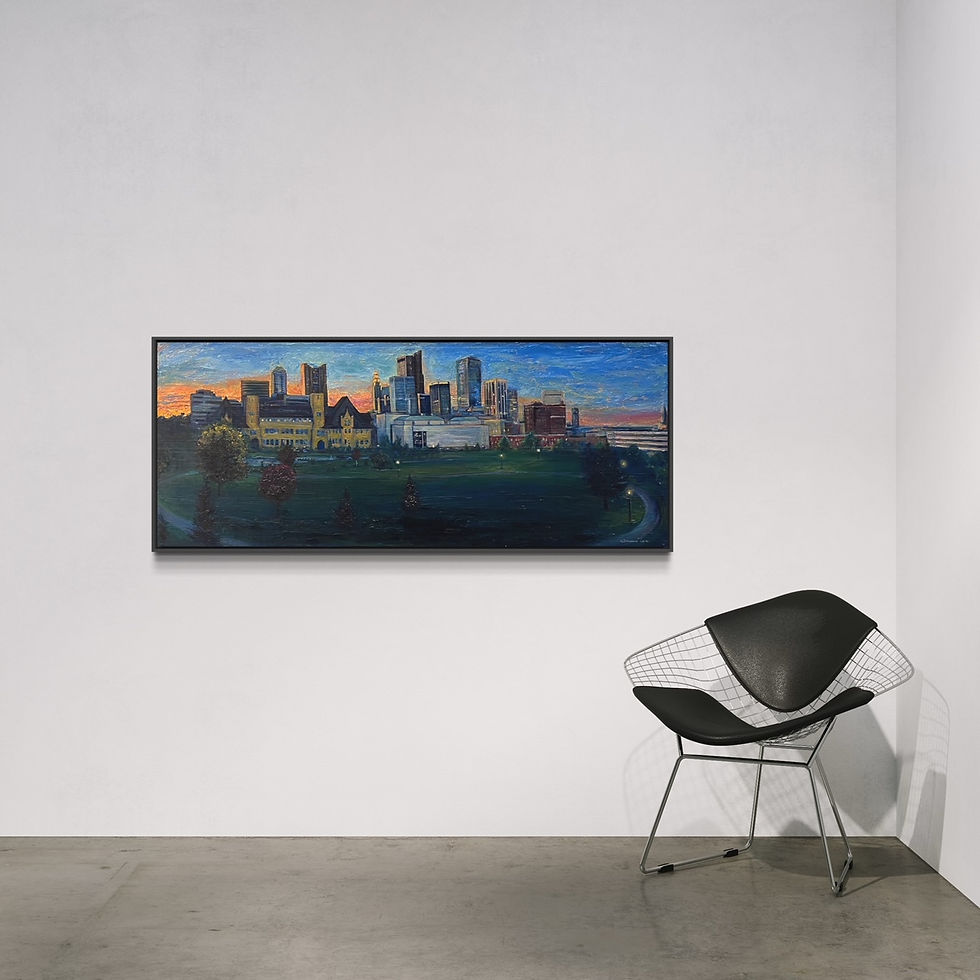 "Columbus Skyline" 24"x60" oil on canvas by OREWILER